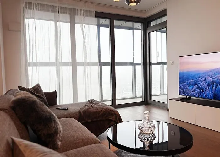 - ❓Hoeveel kost het om bij Skyluxe Loft Eurovea Tower Free Parking appartement te logeren?Een overnachting in Skyluxe Loft Eurovea Tower Free Parking appartement kost €132.